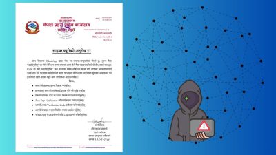 काठमाडौं- नेपाल प्रहरी साइबर ब्यूरोले ह्वाट्सएप ह्याक गरी क्यूआर कोडमार्फत पैसा माग्ने ठगीका घटना बढेको भन्दै सर्वसाधारणलाई सतर्क रहन आग्रह गरेको छ। शंकास्पद सन्देशमा विश्वास नगर्न, सम्बन्धित व्यक्तिलाई फोन गरेर पुष्टि गर्न, लिंक वा फाइल नखोल्न, दुई चरणीय प्रमाणीकरण (Two-step verification) प्रयोग गर्न र ओटीपी (OTP) कसैलाई नदिन अनुरोध गरिएको छ।