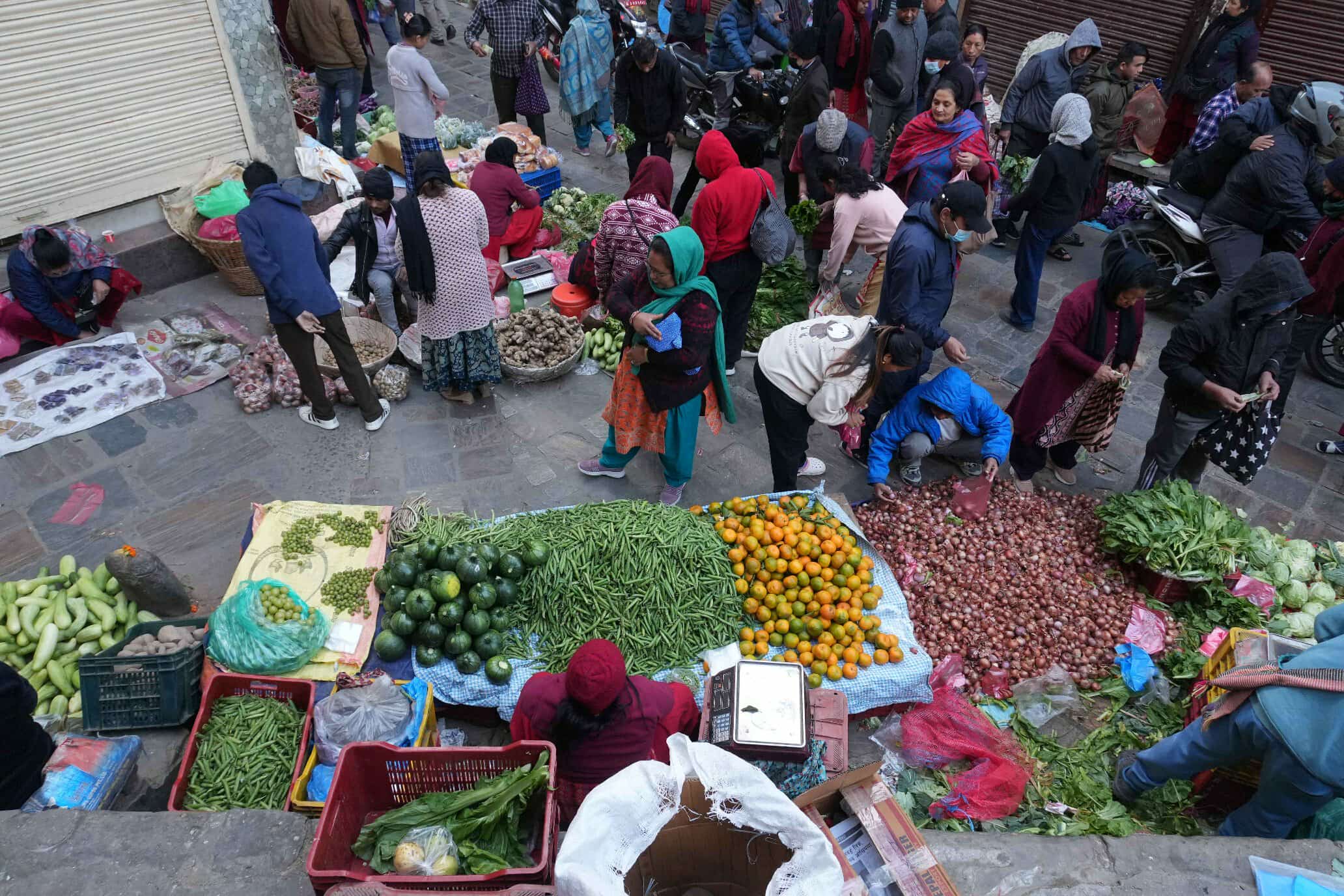 अधिकांस व्यापारी बिहानको व्यापार गर्ने समय केही थप गरिदिए बिक्रीका लागि ल्याइएको सामग्री फिर्ता लाग्न नपर्ने बताउछन् । व्यापारको समय ८ बजे सम्म भए पनि ७:४५ देखि नै नगरप्रहरी पसल उठाउन सिट्टी बजाउँदै आउने व्यापारीहरूको गुनासो छ । (फोटो : नेपाल फोटो लाइब्रेरी)