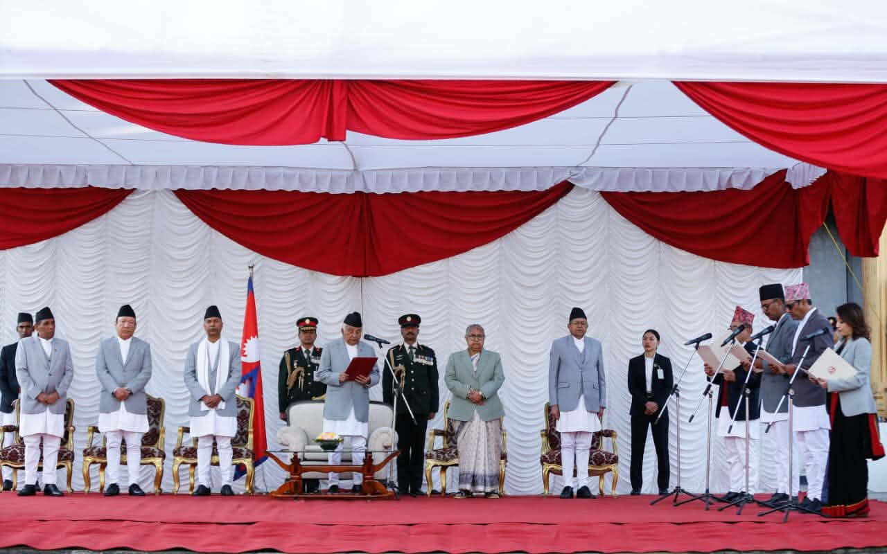 नवनियुक्त ४ जना मन्त्रीहरुले पद तथा गोपनियताको शपथ लिएसँगै पदभार ग्रहण गर्नुभएको छ । आज राष्ट्रपति भवन सितल निवासमा एक कार्यक्रमका विच मन्त्रीहरु श्रद्धा श्रेष्ठले महिला, बालबालिका तथा ज्येष्ठ नागरिक मन्त्रालय, कुमार इङ्नामले भूमि व्यवस्था, सहकारी तथा गरिबी निवारण मन्त्रालय, राजेन्द्रसिंह भण्डारीले श्रम, रोजगार तथा सामाजिक सुरक्षा मन्त्रालय र माधव चौलागाईंले वन तथा वातावरण मन्त्रालयको शपथ लिनुभएको हो ।