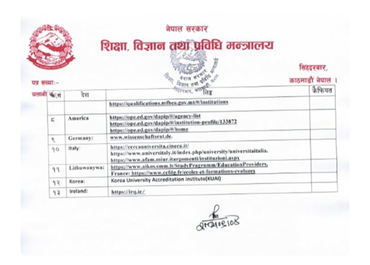 मन्त्रालयले एक सूचना जारी गरेर विदेशी विश्वविद्यालय र कलेजमा नेपाली विद्यार्थी ठगिएको गुनासो आएपछि र्याङकिङ र आधिकारिकता हेरेर मात्र अध्ययन अनुमति पत्र (एनओसी) लिएर अध्ययनमा जान अनुरोध गरेको हो ।