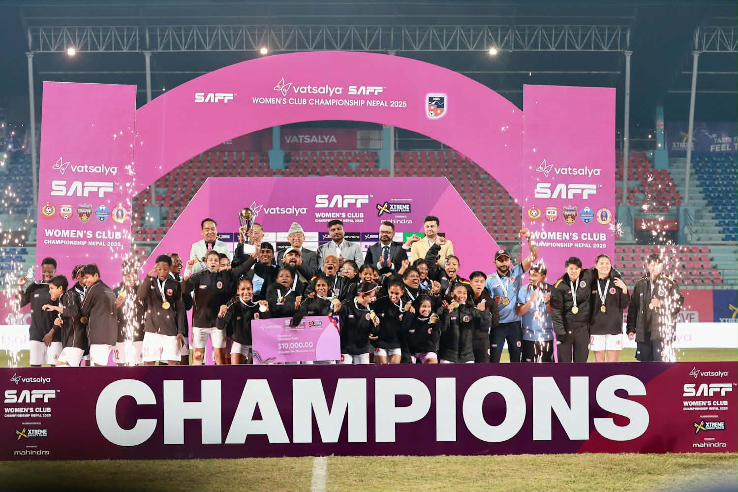 काठमाडौं । साफ महिला क्लब च्याम्पियनसिपको उपाधि इस्ट बंगालले जितेको छ । फाइनलमा नेपालको एपिएफ क्लबलाई ३-० ले हराउँदै इस्ट बंगाल च्याम्पियन बनेको हो ।