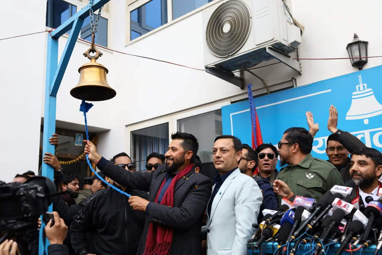 शुक्रबार धरौटी जमानतमा छुट्नुभएका लामिछानेलाई पार्टी कार्यालयमा भव्य स्वागत गरिएको छ । बाजागाजासहित सम्बोधन गरिएका लामिछानेले घण्टी बजाएर सम्बोधन गर्नुभएको थियो । Photo-NPL