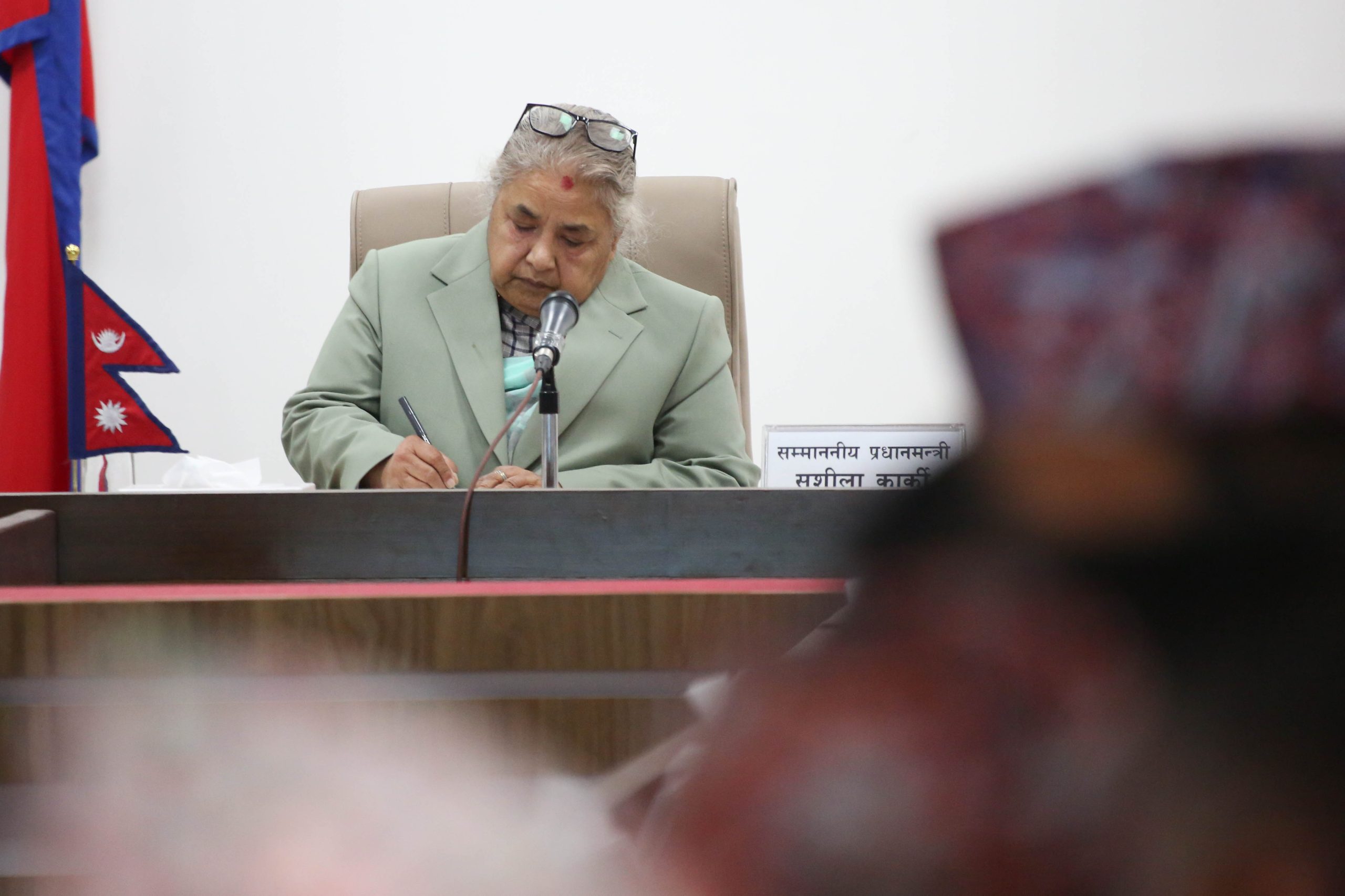 सिंहदरबारस्थित प्रधानमन्त्री तथा मन्त्रीपरिषद कार्यालयमा भएको छलफलमा निर्वाचन कानुन र व्यवस्थापनका सम्बन्धमा छलफल भएको बताइएको छ । फागुन २१ मा निर्वाचन होला नहोला भन्ने दुईथरी बहस भइरहँदा प्रधानमन्त्री कार्कीले निर्वाचनको वातावरण बनाउन निरन्तर संवाद र छलफल गरिरहनुभएको छ ।
