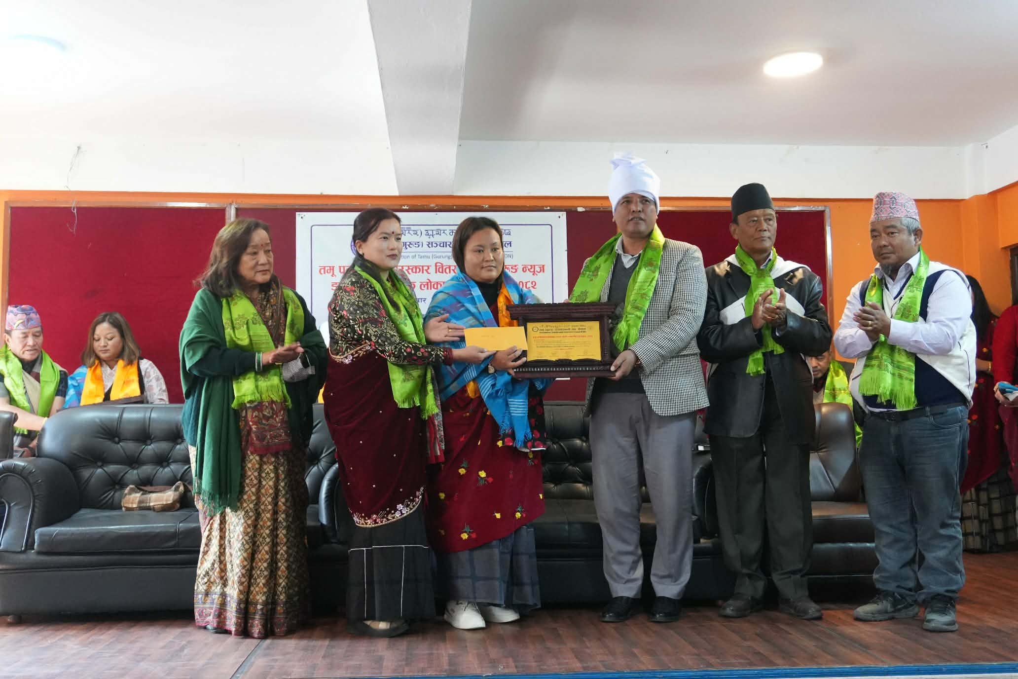 पूर्व प्रधानसेनापति छत्रमानसिंह कमला गुरुङ पत्रकारिता पुरस्कार पत्रकारद्वय धनबहादुर गुरुङ र श्याम कृष्ण श्रेष्ठ, सुश्री भद्रकुमारी घले पत्रकारिता प्रोत्साहन पुरस्कार रविन गुरुङले पाउनु भएको छ । तमू ल्होसार मूल आयोजक पत्रकारिता पुरस्कार पत्रकार इच्छा गुरुङ,आदिकवि हर्कबहादुर गुरुङ स्मृति पत्रकारिता पुरस्कार भीमाया गुरुङ र लक्ष्मी गुरुङ पत्रकारिता पुरस्कार सुचना गुरुङलाई प्रदमन गरिएको संघका अध्यक्ष लाला गुरुङले जानकारी दिनुभएको छ ।