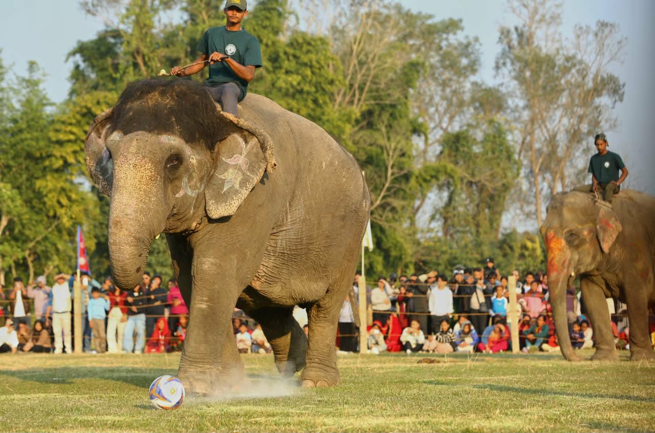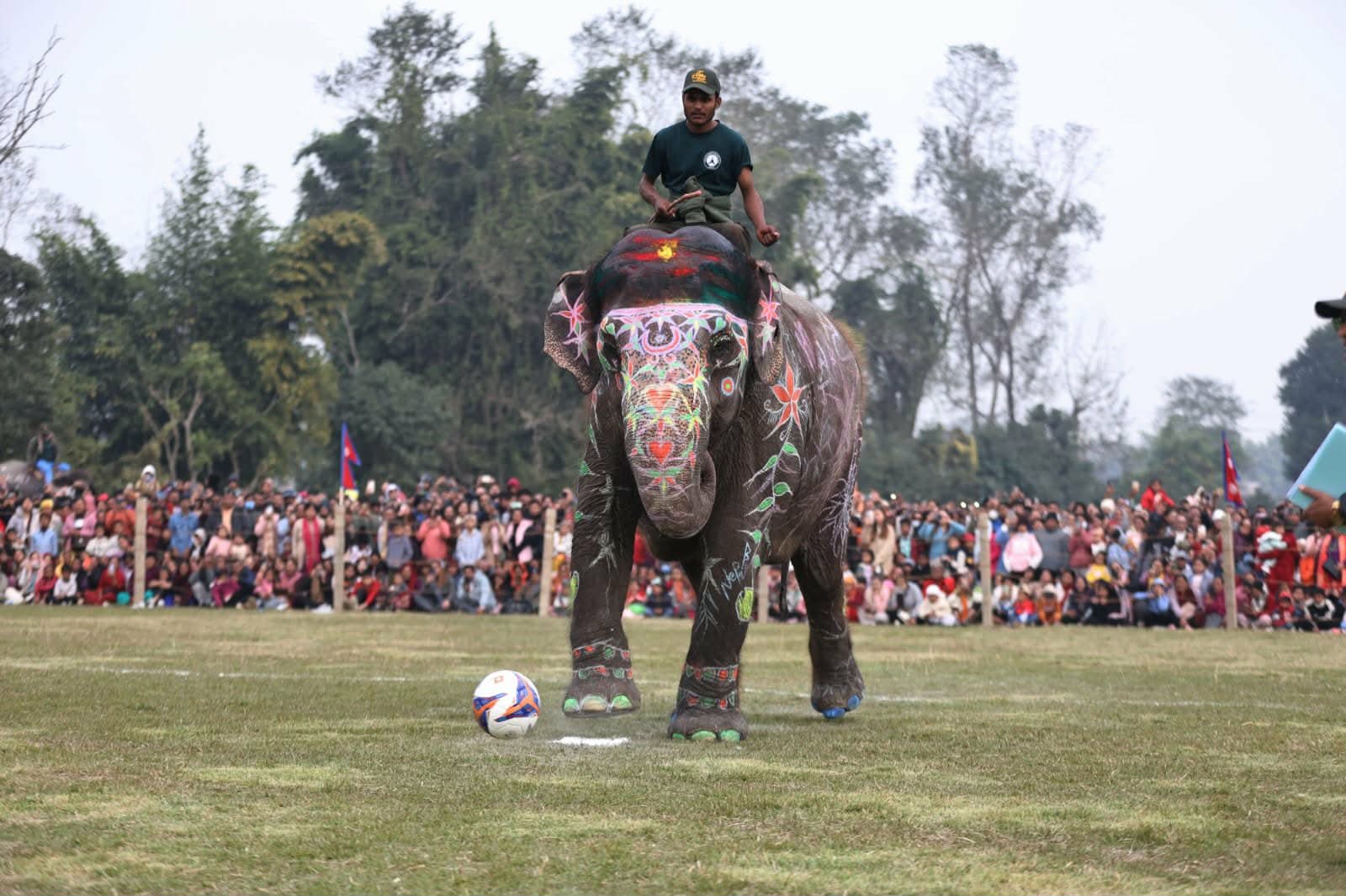 सौराहामा हात्ती महोत्सव, फुटबल खेल्दै हात्तीहरु