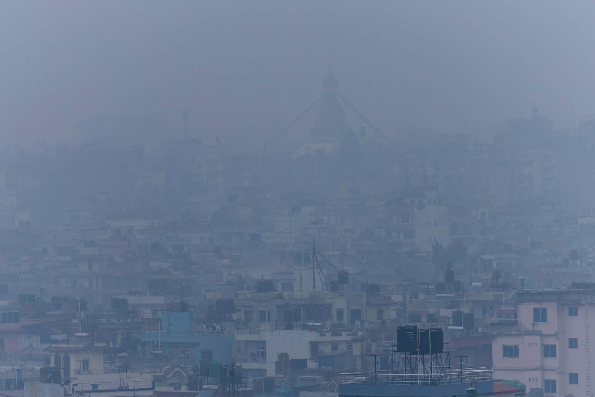 बिहानैदेखि काठमाडौँ उपत्यकाका केही स्थानमा हल्का वर्षा हुँदा दैनिक जनजीवन प्रभावित भएको छ । स्विस वायु प्रदूषण मापन एप ‘आईक्यूएयर’का अनुसार काठमाडौँको वायु गुणस्तर ‘अति अस्वस्थकर’ स्तरमा पुग्दा अत्यावश्यक बाहेक काममा बाहिर ननिस्किन, मास्क प्रयोग गर्न चिकित्सकले सुझाब दिएका छन् ।