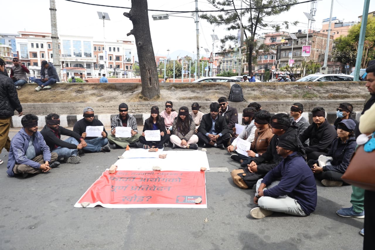 सोमबार समेत युवाहरुले माइतीघरमा धर्ना दिए । उनीहरूले आँखामा कालो पट्टि बाँधेर आयोग पारदर्शी हुनुपर्ने र अघिल्ला आयोगहरु जस्तो नबनाउन आग्रह गरेका छन्। प्रदर्शन शान्तिपूर्ण रहने भन्दै युवाहरुले सरकारमाथीको खबरदारी जारी रहने बताएका छन् । Photo-NPL