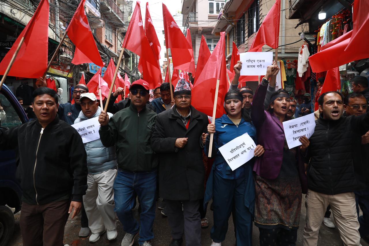ओली पक्राउको विरोधमा सडकमा एमाले